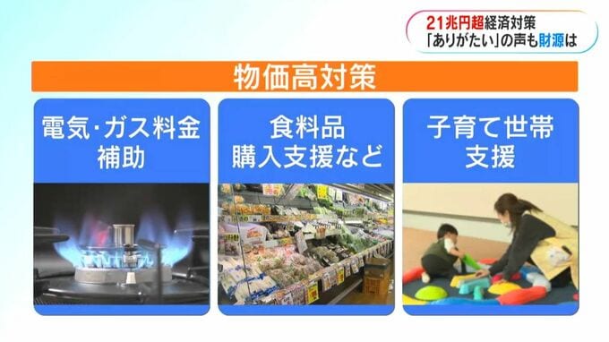 県民からは歓迎の声も上がる一方、21兆円の財源について、高市総理が「足りない部分を国債発行で賄う」考えを示したことについては…