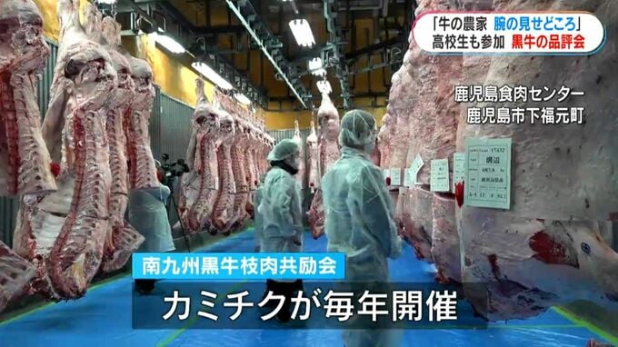 鹿児島、宮崎、熊本の3県の黒牛の品質を競う品評会が開かれました。鹿児島県内で畜産を学ぶ高校生が育てた牛も出品されました。