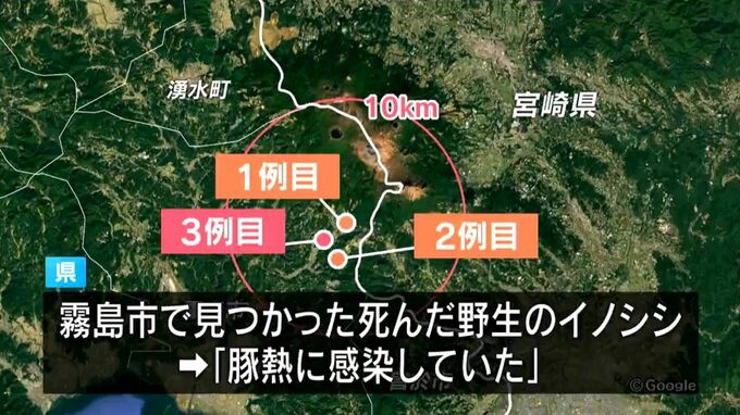 鹿児島県内で野生イノシシの豚熱感染が確認されたのは3例目で、1例目から2.7キロの距離でした。