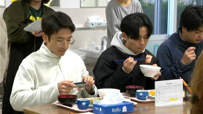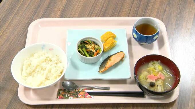 メニューは、鮭の塩焼きや卵焼き、みそ汁などの6品。来年4月から栄養士として働く学生4人が、1食で1日に必要な野菜やカルシウム、鉄分の半分をとることができるメニューを考えました。