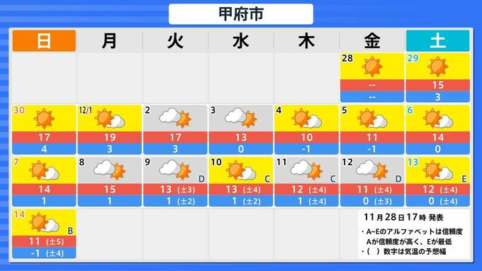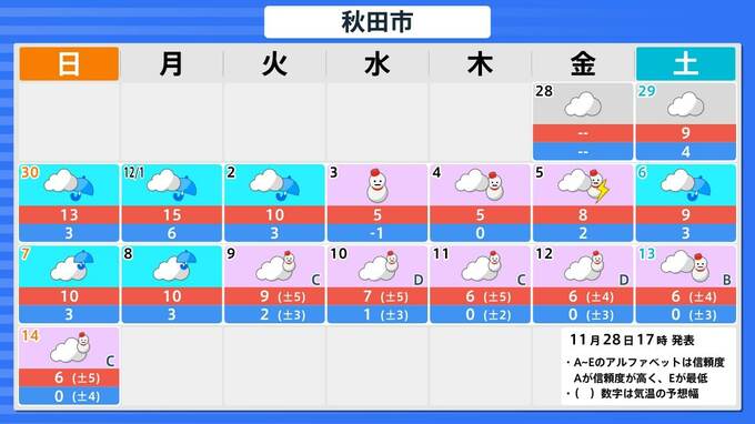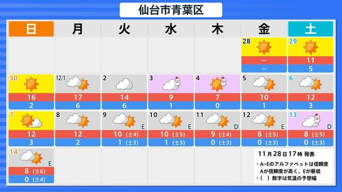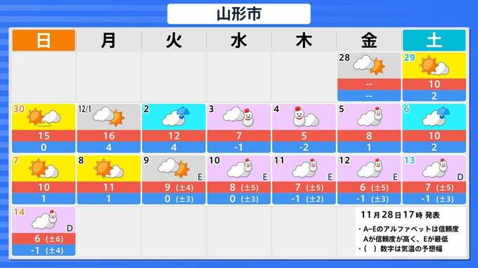 県庁所在地の16日間予報 (28日(金)~12月14日(日))
