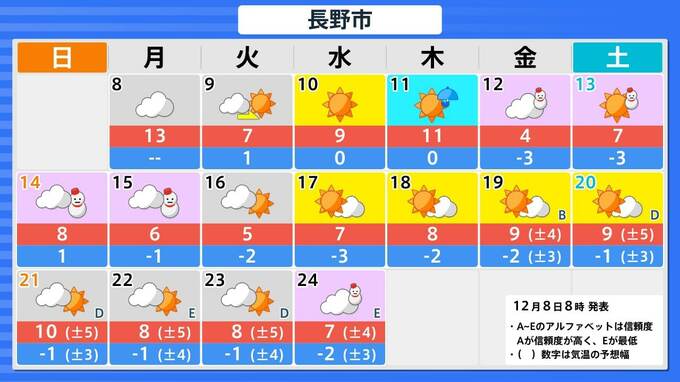 計画を立てよう 16日間予報(8日(月)~24日(水))
