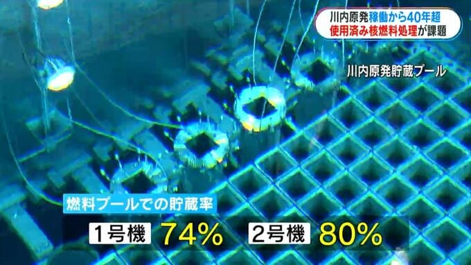 川内原発では水を使った燃料プールでの貯蔵率が1号機で74%、2号機では80%に達しています。6年後の2031年には満杯になる見込みなんです。