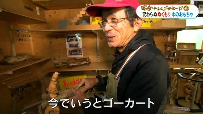 (木工作家 角嘉昭さん)「今でいうとゴーカート。ブレーキもないけど乗って坂道を下って遊んでいた。車輪は丸太を輪切りにして穴をあけて。わくわくですよね。早く作って乗りたいという」