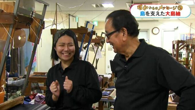 (今年8月に入社した沖光里さん)「奄美をまるごと詰め込んだような着物に魅力を感じて、大島紬の職人になりたいと思った」
