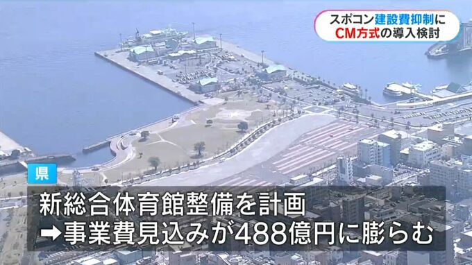 膨らむ事業費が課題となっている県の新たな体育館について、建設費の抑制などを図ろうと、県は設計段階から専門的なアドバイスを委託事業者から受ける仕組みの導入を、検討していることを明らかにしました。