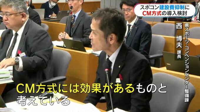 (県スポーツ・コンベンションセンター整備課 西博夫課長)「CMを導入する事例で委託費用を相当程度上回る建設費の抑制が図られたと聞いている。CM方式には、効果があるものと考えている」