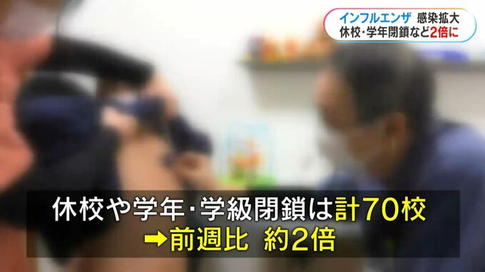 インフルエンザの感染が学校現場に広がっています。県内の休校や学年・学級閉鎖はあわせて70校となり、前の週のおよそ2倍です。