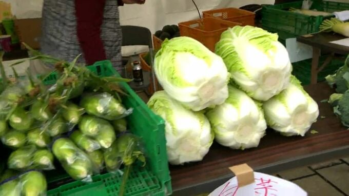 (記者)「こちら暮れの市では、小さな桜島小ミカンから大きな白菜まで、鹿児島市内で採れた農産物が数多く販売されています」