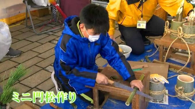 会場では野菜やミカンなどのほか、焼きたての餅の販売やミニ門松作りの体験もありました。
