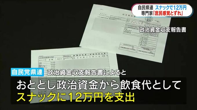 自民党鹿児島県連がおととし、政治資金から飲食代としてスナックに12万円を支出していたことが分かりました。県連は「公金の支出はない」としていますが、専門家は「国民の感覚とずれがある」と指摘します。
