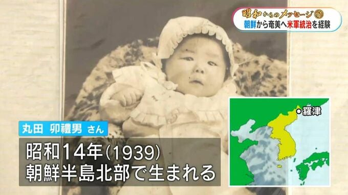 丸田さんは第二次世界大戦が勃発した昭和14年、当時、日本の植民地だった朝鮮半島北部の港町・羅津で生まれました。両親は奄美大島出身。3人きょうだいの末っ子で、父親は満鉄の技師でした。