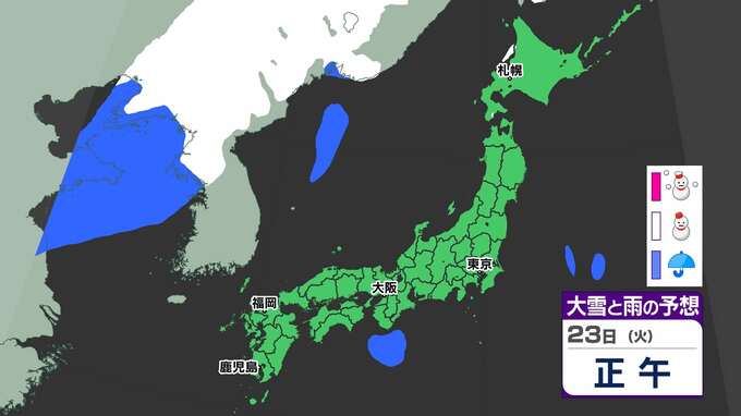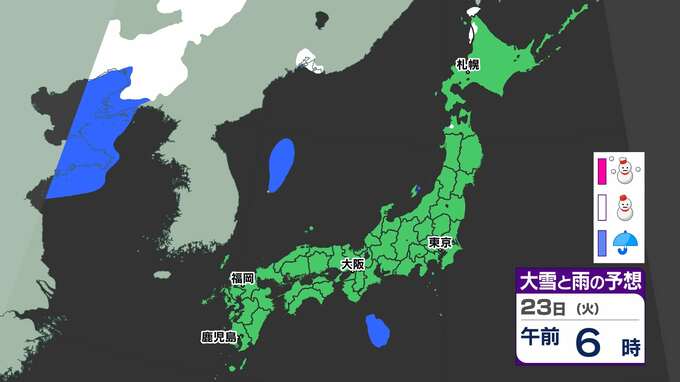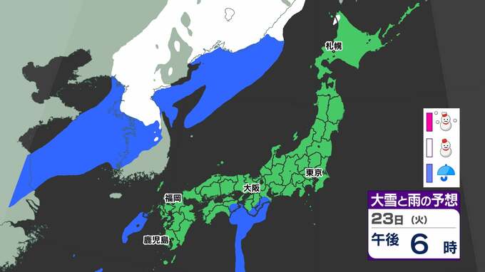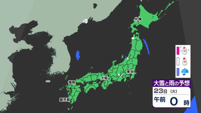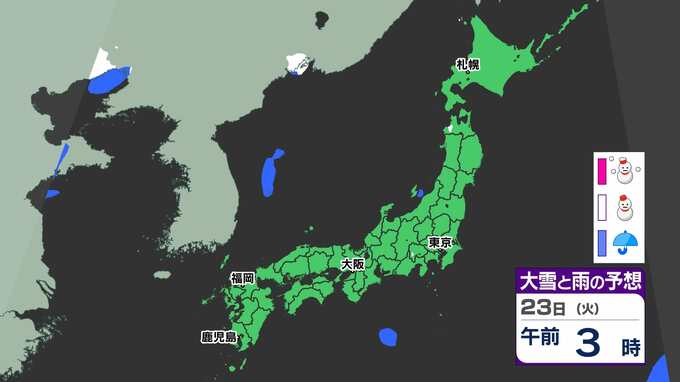 24日(水)25日(木)は「雨主体」の予想ですが、26日(金)には「雪」に変わり、「大雪」を予想する、”赤色”の表示も出てきます。気象庁は、