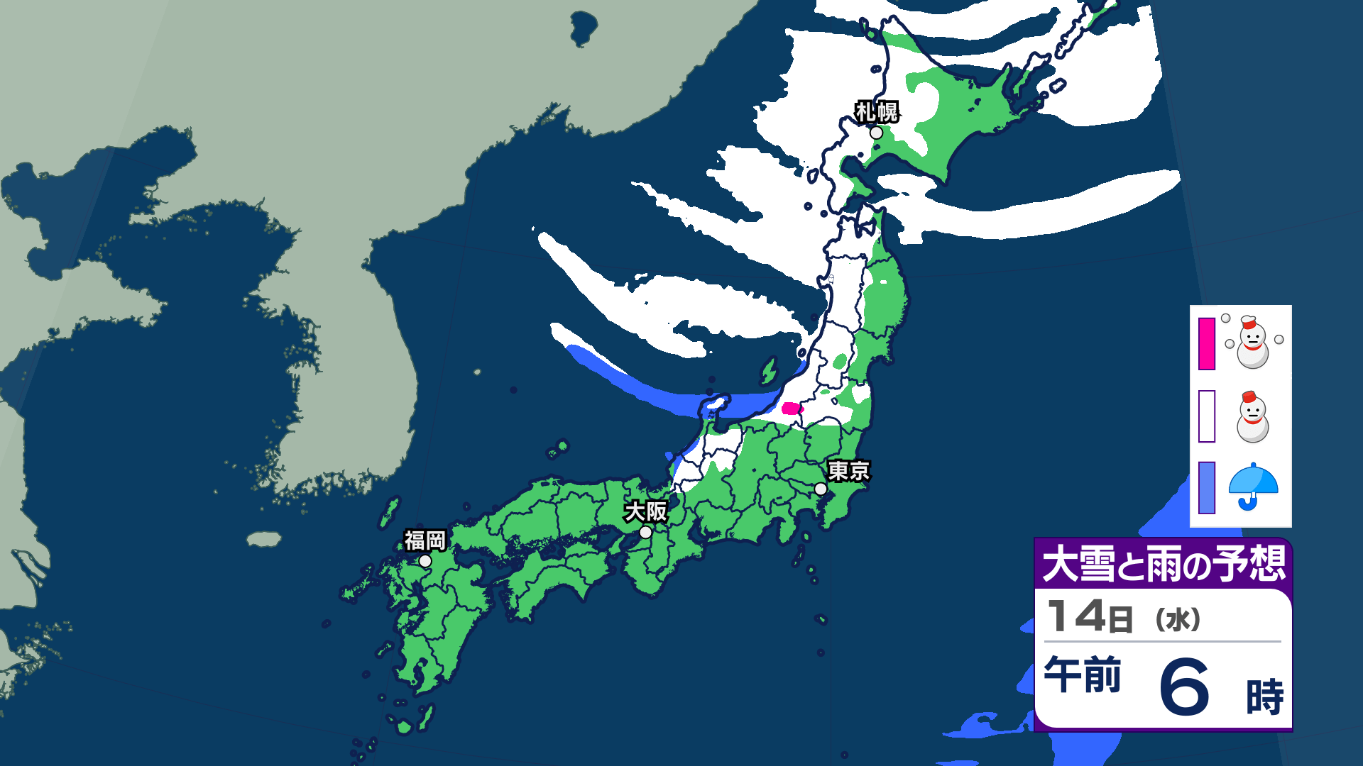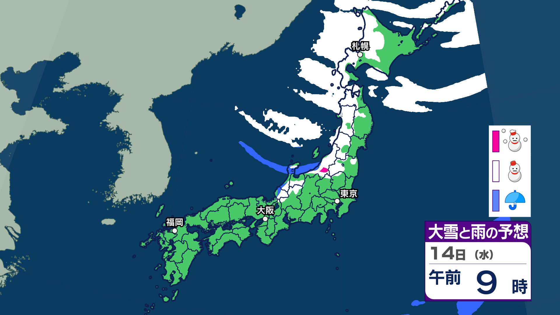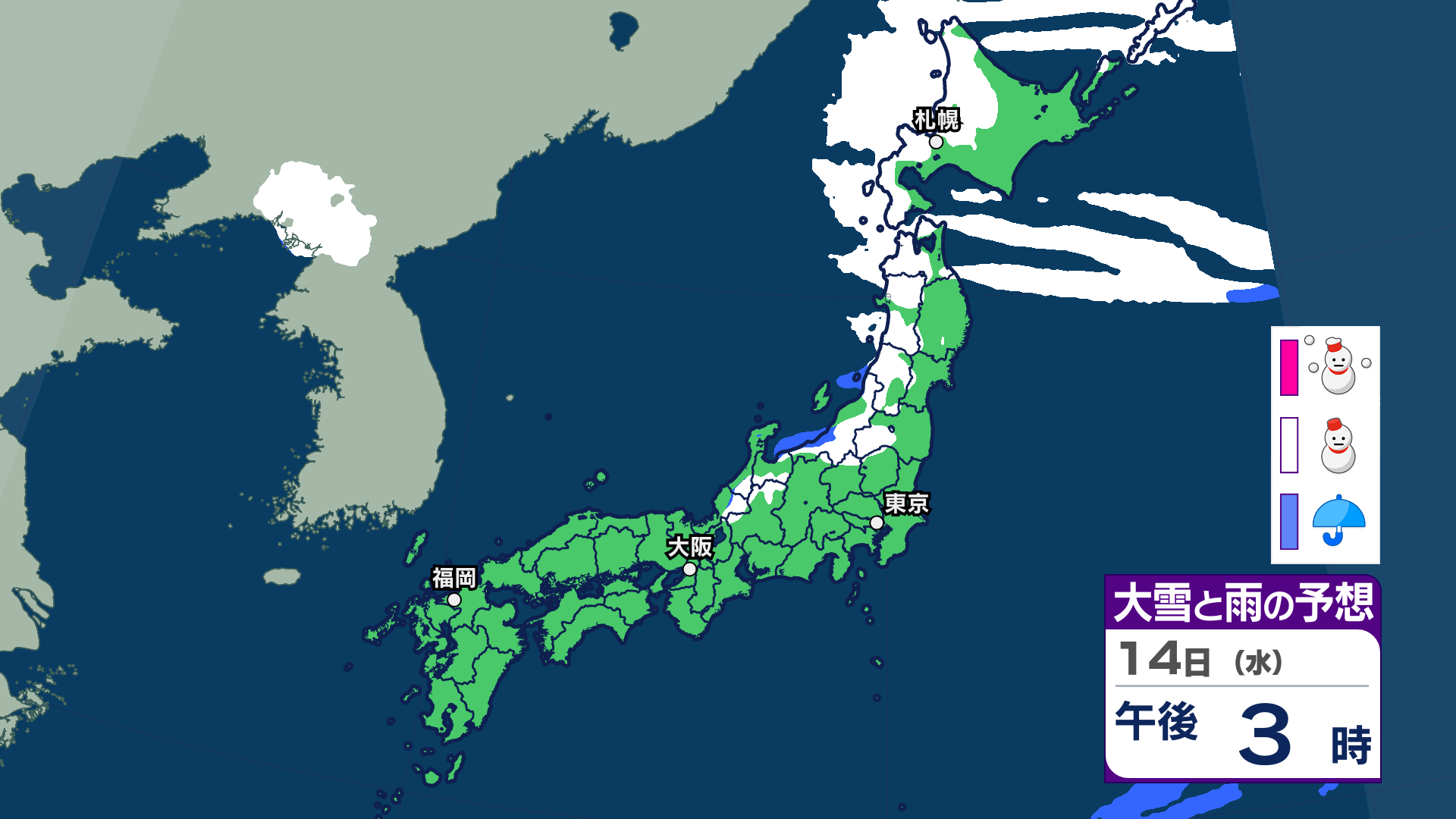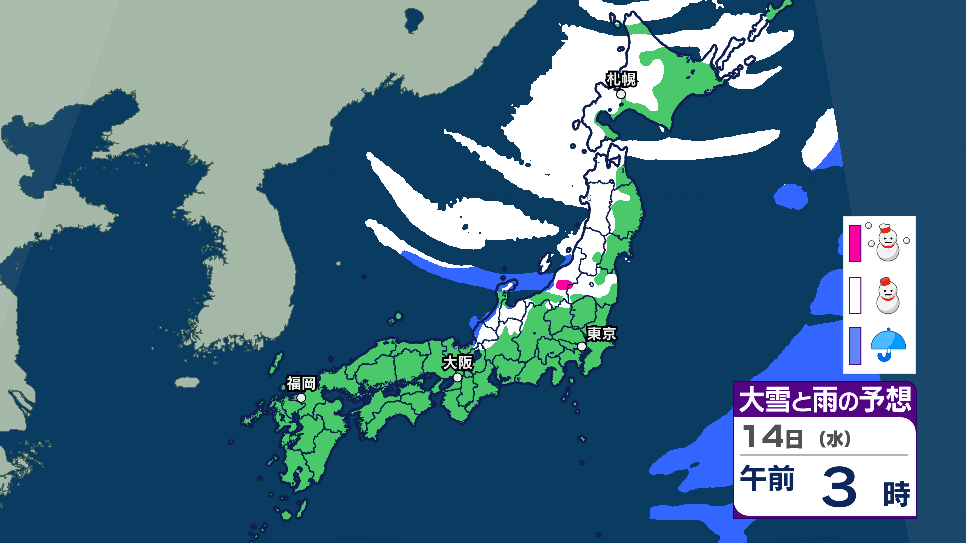 3. 【大雪情報】三連休は「警報級の大雪」おそれ北日本~西日本【雪・雨シミュレーション14日(水)まで】関東甲信、東海、近畿、中国、九州でも雪予想【大雪予報】