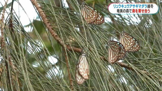 8日朝の奄美市名瀬の気温は13度ほどで、数十匹のチョウが身を寄せ合うように春を待っていました。