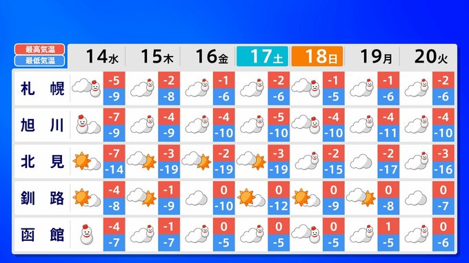 全国の週間予報(14日(水)~20日(火))