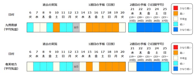 九州南部・奄美地方 1月21日頃から かなりの低温
