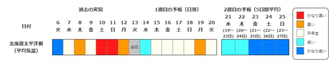 、21日頃からはかなり低くなる可能性があります。また、21日頃からは