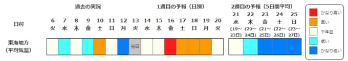 東海地方の気温は、向こう1週間程度は寒気の影響を受けにくいため平年