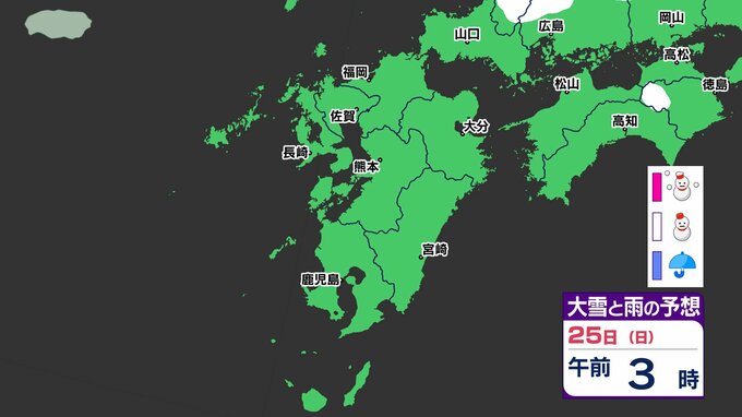 【大寒寒波】九州も「雪」の予報「雪はいつ どこで」【雪シミュレーション21日(水)~25日(日) / 九州各都市の週間予報】福岡・佐賀・長崎・大分・熊本・宮崎・鹿児島 2026年1月19日(月) 12:05 国内 天気 この記事をはじめから → 寒波はじまる 九州も雪のおそれ「雪シミュレーション」
