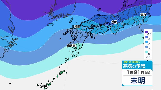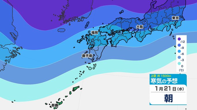 【大寒寒波】九州も「雪」の予報「雪はいつ どこで」【雪シミュレーション21日(水)~25日(日) / 九州各都市の週間予報】福岡・佐賀・長崎・大分・熊本・宮崎・鹿児島 2026年1月19日(月) 12:05 国内 天気 寒気シミュレーション21日(水)~25日(日) 上空約1500mには、九州北部で「氷点下12℃」、九州南部で「氷点下9℃」の寒気が流れ込んできそうです。今シーズン一番の『寒気』が予想されています。 この記事をはじめから → 寒波はじまる 九州も雪のおそれ「雪シミュレーション」
