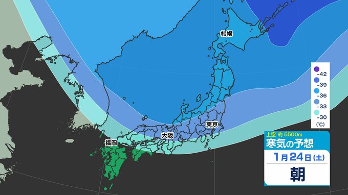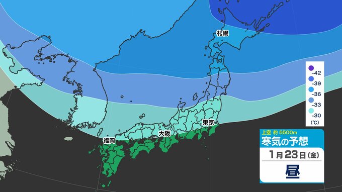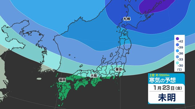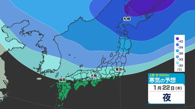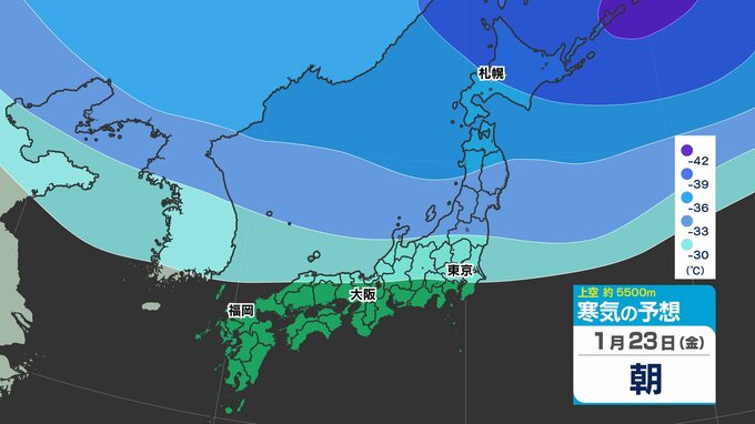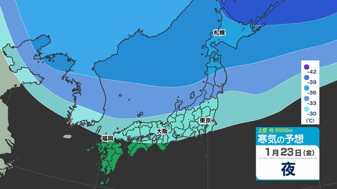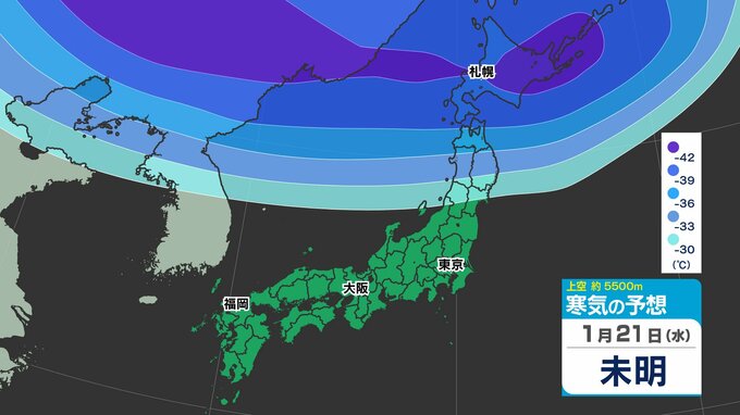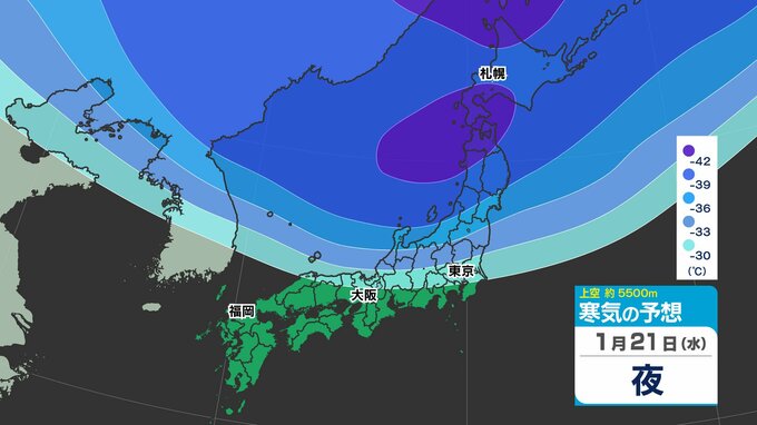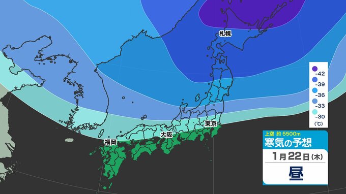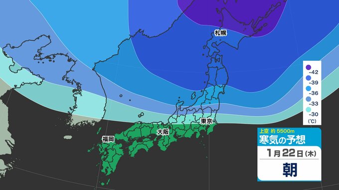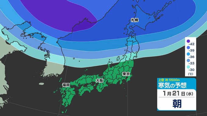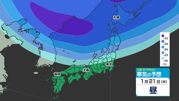 東日本の上空約5000メートルには、25日(日)頃にかけて断続的に「氷点下40℃以下」の強い寒気が流れ込むでしょう。大雪の目安とされる寒気が「氷点下36℃以下」と言われ、「今シーズン最強」であるとともに、長く居座る見込みのため、気象予報士やマスコミが【今季最強最長 ”寒波” 】と呼んでいます。