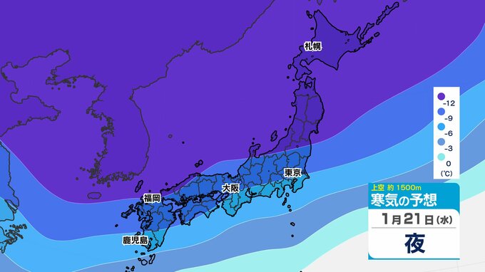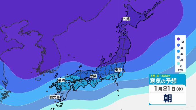 【東京首都圏 雪?】「大寒寒波」はじまる 関東地方北部で大雪のおそれ【雪シミュレーション21日(水)~25日(日) / 関東各都市の週間予報】東京・神奈川・埼玉・千葉・群馬・茨城・栃木・山梨・長野 2026年1月19日(月) 19:30 国内 天気 寒気シミュレーション21日(水)~25日(日) 上空約1500mには「平地で雪」の目安の「氷点下6℃以下」の寒気が、関東地方に居座り続ける見込みです。21日(水)~22日(木)と25日(日)は寒気の流れ込みが強まり「氷点下9℃以下」の寒気も予想されています。 この記事をはじめから → 【大寒寒波】 関東北部は大雪のおそれ 都心は?「雪シミュレーション」