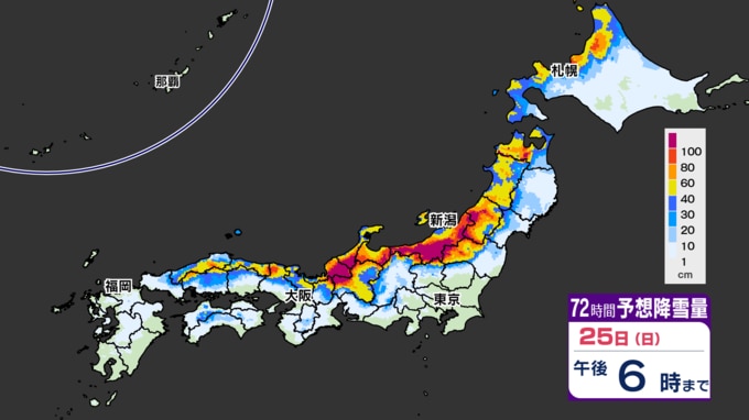 その後も25日(日)頃にかけて、強い冬型の気圧配置が続くため、北日本から西日本の日本海側を中心に大雪が続き、積雪がさらに増えるおそれがあります。