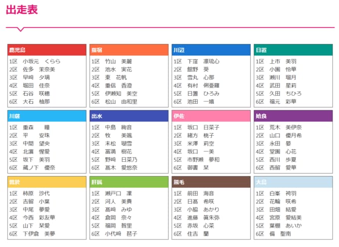 12チームが思いをつなぐ「たすきの色」 - ① 鹿児島地区 (前回優勝)
