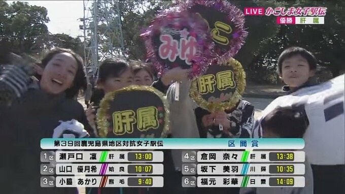 肝属がゴールまで先頭を守り切り、9年ぶりに優勝しました。2位は鹿児島、3位は姶良でした。