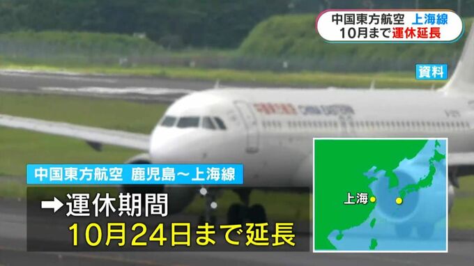 日中関係が冷え込む中、観光や経済などへの影響がさらに広がりそうです。中国東方航空は、今年3月末までとしていた鹿児島・上海線の運休期間を、10月まで延長することを決めました。
