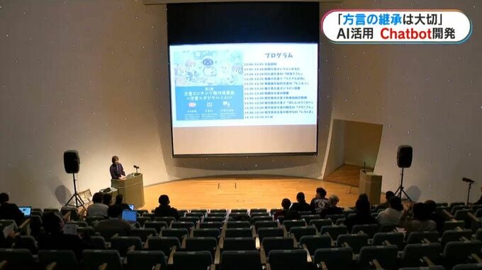 29日に開かれた発表会では、方言の辞典や家族との会話などをAIに学習させて開発中の「チャットボット」も披露されました。
