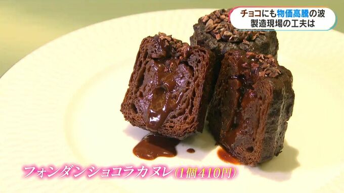 人気商品の1つ「フォンダンショコラカヌレ」は使用するチョコレートをフランス産から国産に。チョコレートだけではなくクッキーを加えた商品で原価を落としました。