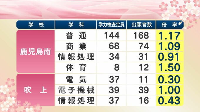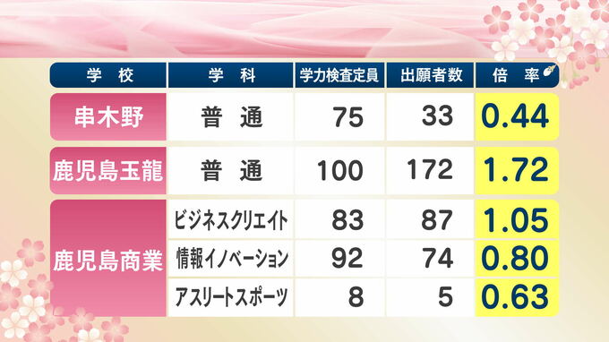 鹿児島県公立高校入試最終倍率【全校掲載】高倍率は玉龍、鹿児島中央、鹿児島南(体育)、鶴丸、甲南【令和8年度高校受験志願倍率と出願者数】2026最新 2026年2月24日(火) 14:35 国内 鹿児島学区の最終出願倍率(最新) 鹿児島学区は鶴丸、甲南、鹿児島中央、錦江湾、武岡台、開陽、明桜館、松陽、鹿児島東、鹿児島工業、鹿児島南、吹上、伊集院、市来農芸、串木野、鹿児島玉龍、鹿児島商業、鹿児島女子です。