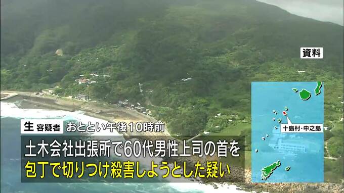 鹿児島中央警察署によりますと、生容疑者は23日午後10時前、中之島にある勤務先の土木会社の出張所で、60代の男性上司の首を包丁で切りつけて殺害しようとした疑いが持たれています。