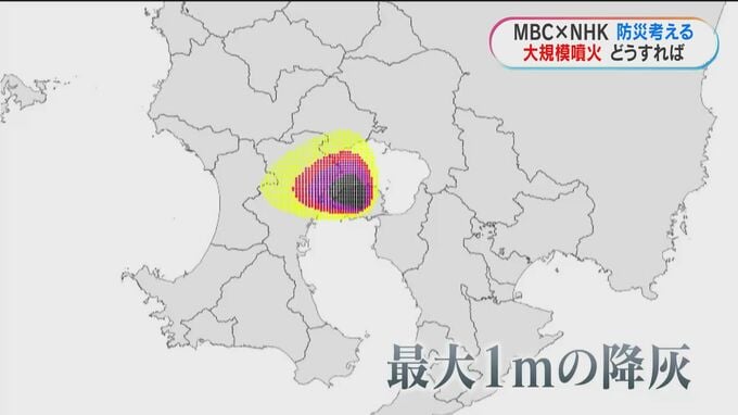 これは、鹿児島大学がつくった降灰のシミュレーションです。大正噴火級の大規模噴火が起きれば、鹿児島市の中心部で最悪の場合、灰が1メートル積もると予想されています。