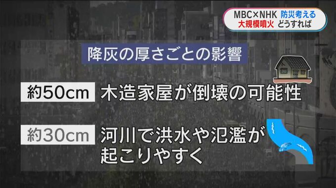 火山災害では降灰が50センチ程度積もると木造家屋が倒壊、30センチ程度積もると川などの水が流れにくくなり洪水や氾濫が起こりやすくなるとされています。