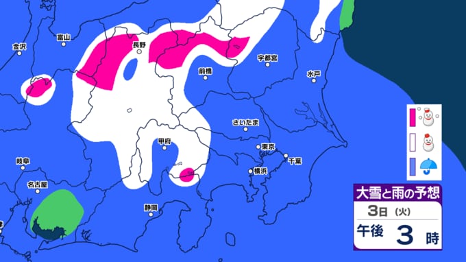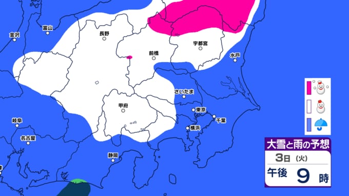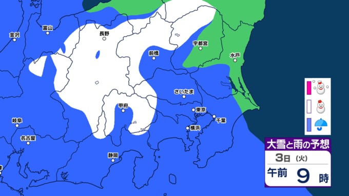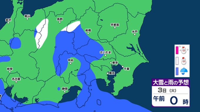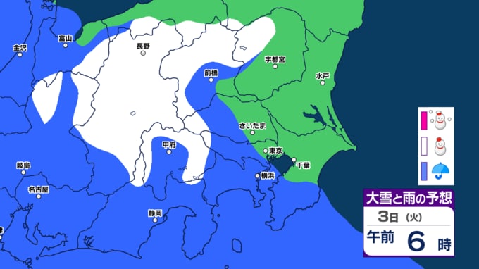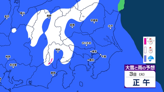 【東京、神奈川、埼玉など雪か】3月3日(火)~7日(土)雪と雨のシミュレーション気象庁「警報級の大雪の可能性」【関東甲信の週間予報】東京・神奈川・埼玉・千葉・群馬・茨城・栃木・山梨・長野【雪情報】 2026年3月1日(日) 08:15 国内 3月3日関東地方 雪と雨のシミュレーション東京、埼玉、神奈川など雪か ▼この記事をはじめから → 【東京都心 雪の予想】雪シミュレーション