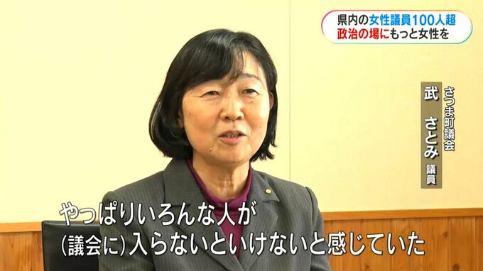 (さつま町議会 武さとみ議員)「私は学校に務めていたから、たすきをかけて回った時に、『先生何しているの』と子どもたちに言われて、『立候補した』と言うと、『頑張ってね』と言ってくれたが、そんなふうに女性議員が身近にいるということを子どもたちの環境の中に見せるということが大事」