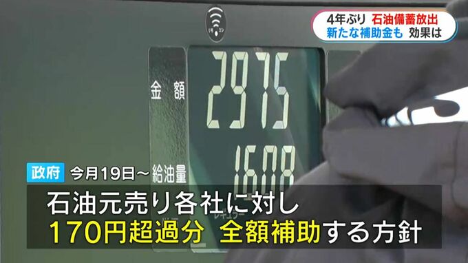 またガソリン価格の高騰を見越して導入されるのが新たな補助金です。政府は今月19日から全国の平均小売価格を1リットルあたり170円程度に抑えるため、石油元売り各社に対し、170円を超える部分の全額を補助する方針です。