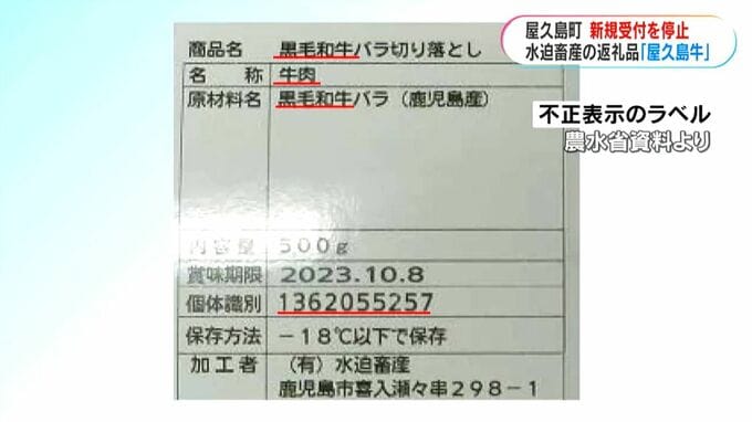 鹿児島県指宿市の水迫畜産が牛肉の産地などを不正に表示していた問題で、屋久島町は、ふるさと納税で水迫畜産の返礼品の受け付けを停止しました。