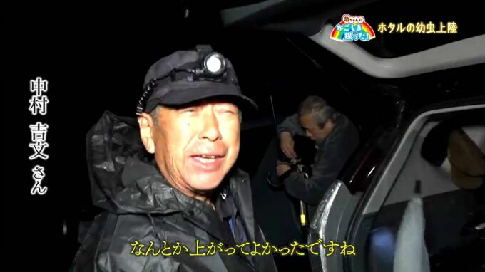 春の雨の日だけに見られる川内川の神秘。ゲンジボタルの幼虫の上陸は、来月上旬まで見られそうです。