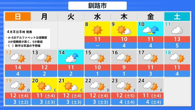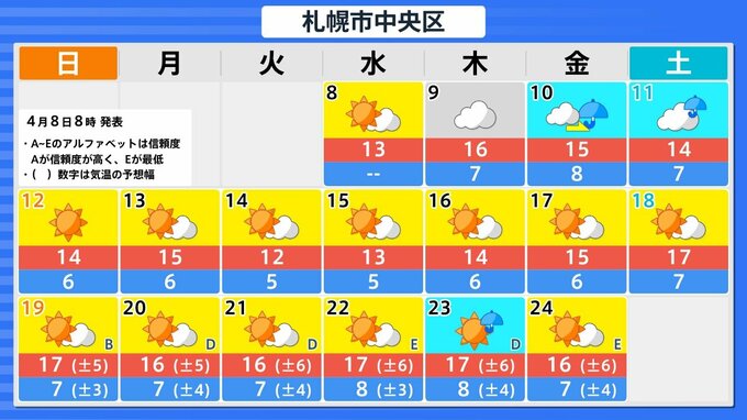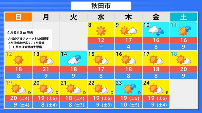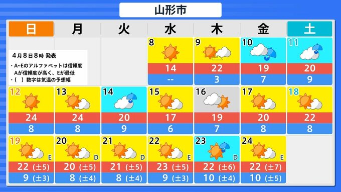 4月12日頃から「この時期としては10年に一度程度しか起きないような著しい高温」になる可能性 気象庁が「高温に関する早期天候情報」発表【関東甲信、東海、北陸、中国、四国、九州北部、九州南部・奄美、沖縄】 2026年4月7日(火) 16:30 国内 全国47都道府県の16日間天気予報と最高気温(画像で掲載) 北海道・札幌 北海道・釧路 青森県 岩手県 宮城県 秋田県 山形県 福島県
