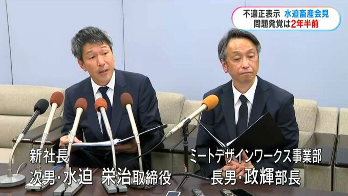 牛肉の不適正表示の水迫畜産 認識後も2年半公表せず「ミスは個人の責任」鹿児島 2026年4月10日(金) 19:16 国内 水迫政治社長は辞任 水迫政治社長は10日付けで辞任し姿を見せず、次男で新たな社長に就いた水迫栄治取締役と、長男で牛肉の加工などを担う水迫政輝部長が出席しました。
