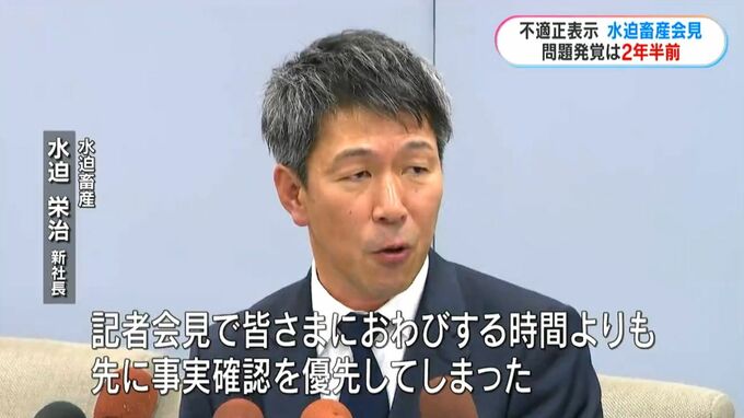 (水迫畜産 水迫栄治新社長)「事実確認を先にした上で消費者に説明できる体制を作ろうという思いで、記者会見よりで皆様にお詫びする時間よりも先に事実関係を優先してしまった」
