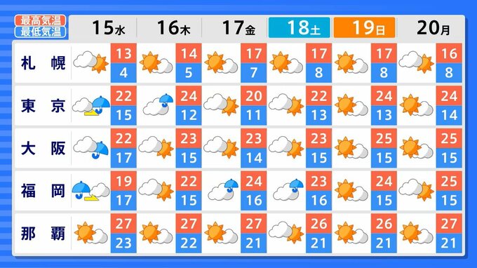 4月19日頃から、「この時期としては10年に1度程度しか起きないような著しい高温」となる可能性があります。