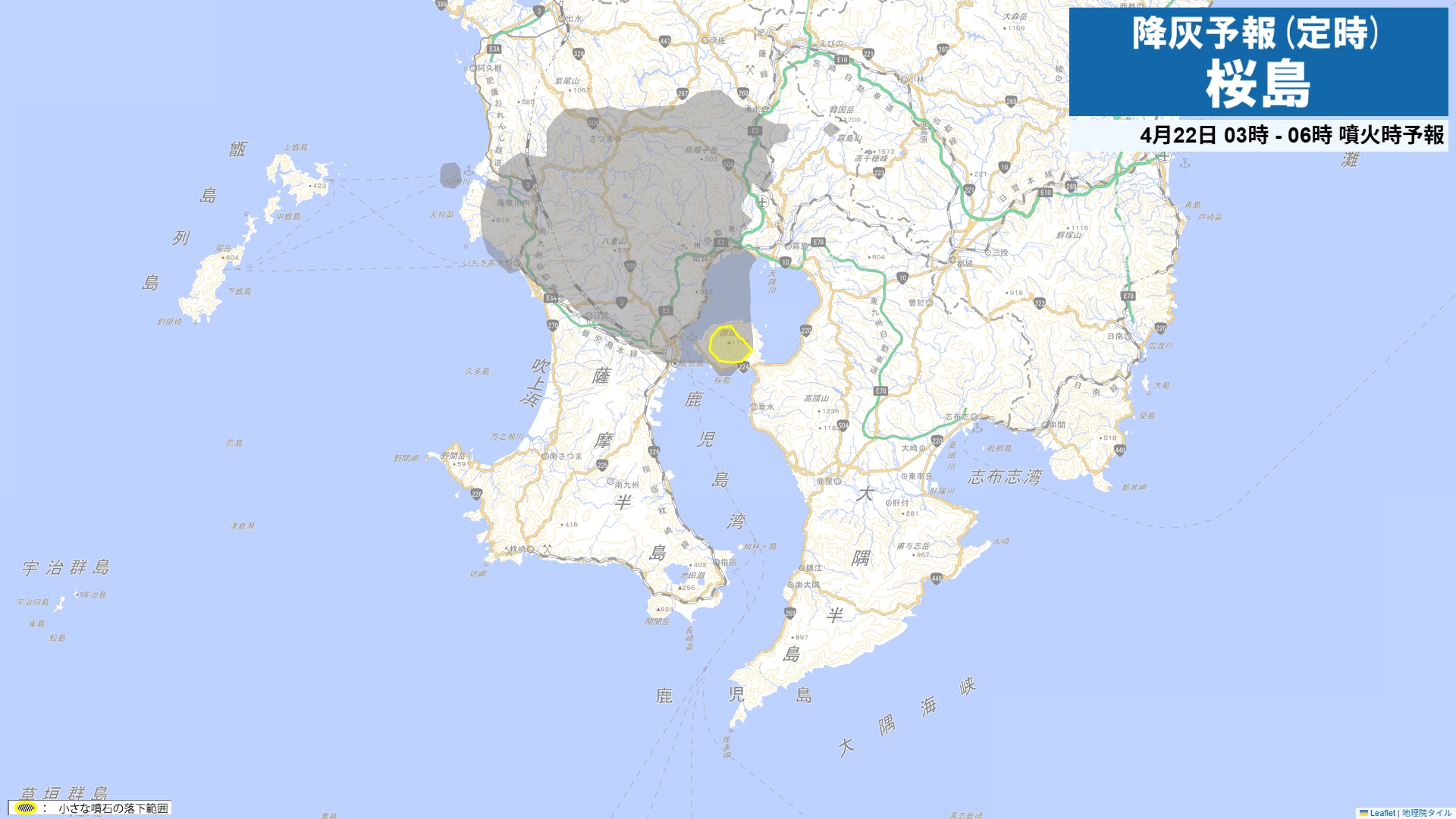 ▼22日03時から06時まで 北西(鹿児島市吉野方向) 60km 3km