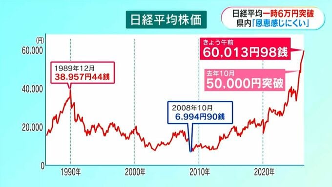 (記者)「日経平均が初めて6万円を突破。県民はどう感じているのでしょうか」