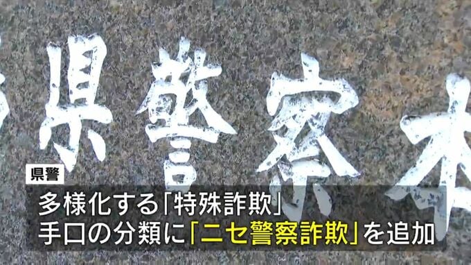 こうした警察官などをかたる詐欺が増える中、県警は今月から、多様化する「特殊詐欺」の手口の分類の1つに、「ニセ警察詐欺」を新たに設けました。