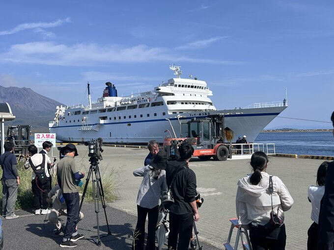 中には登山目的とみられる大きなリュックを背負った海外からの観光客の姿もあり、乗客たちは船の上から不安そうに接岸作業を見守っていました。